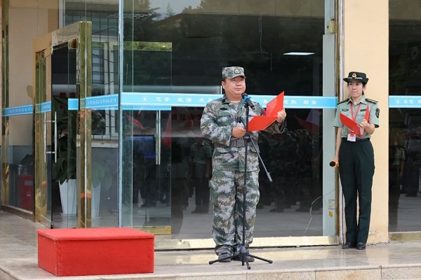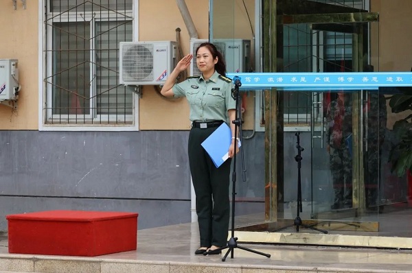 典礼由军教处副主任姚莎莎主持。大队长肖川从张凯校长手中接过校旗,同时也接过了责任,而后进行“授校旗”仪式,肖川大队长将校旗交到国旗护卫队的手中,代表着2022级新生训练营的正式成立。