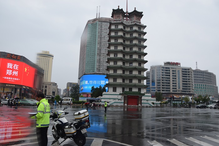 上午9时18分,尖锐的防空警报声响彻城市上空。刹那间,郑州交警四支队全体民辅警整齐划一,迅速脱帽,面容凝重,庄重地肃立默哀。与此同时,路口执勤交警通过规范有力的指挥手势,示意车辆暂停行驶。